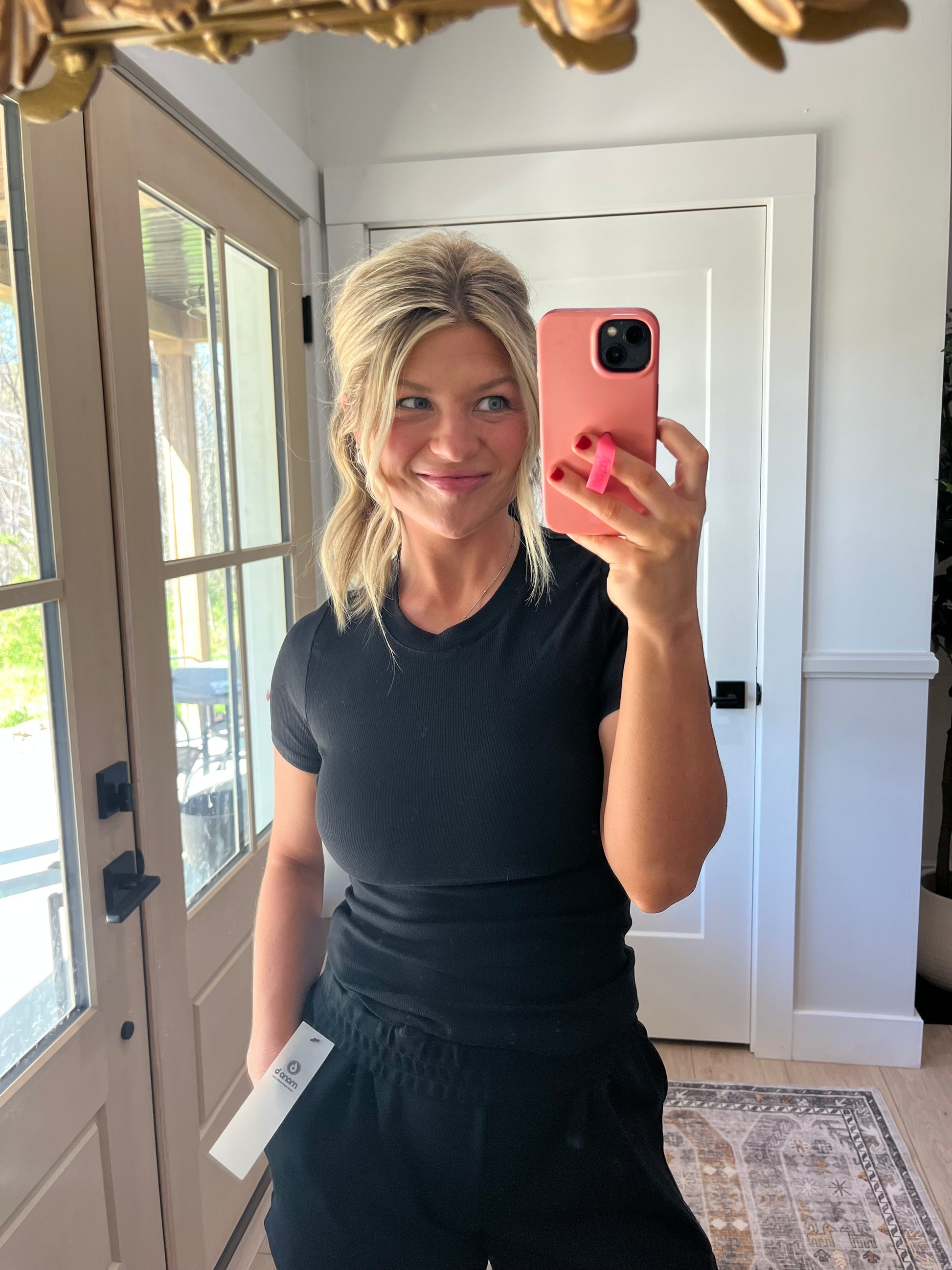 The perfect short sleeve fitted top is HERE! Crafted from a rayon-spandex blend with micro ribbing, this short sleeve top has a full coverage length, a rounded neckline and a fitted silhouette. The stretch provides an ultimate, second skin feel.