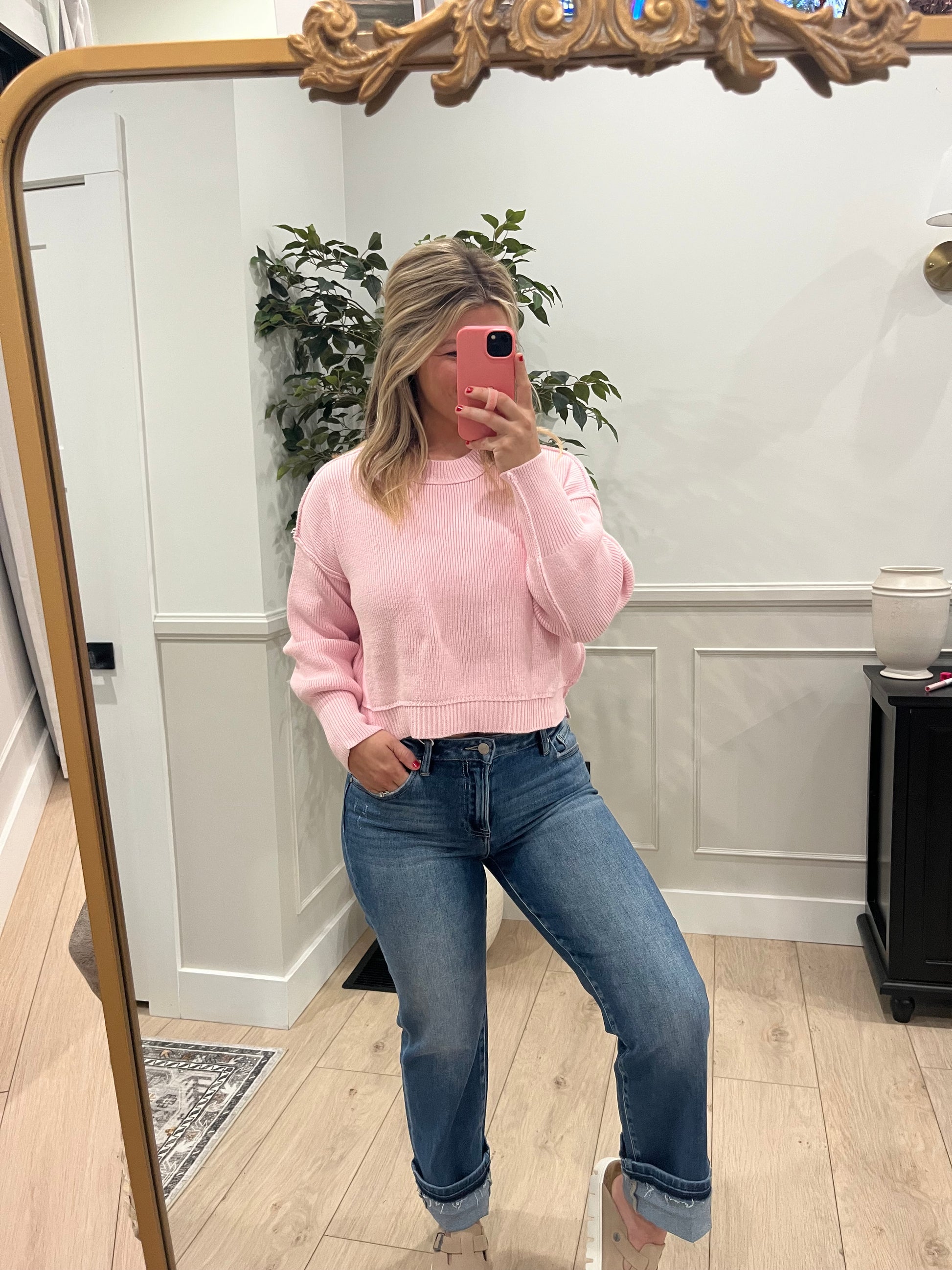 Risen brand - mid rise, ankle straight cuffed jeans.