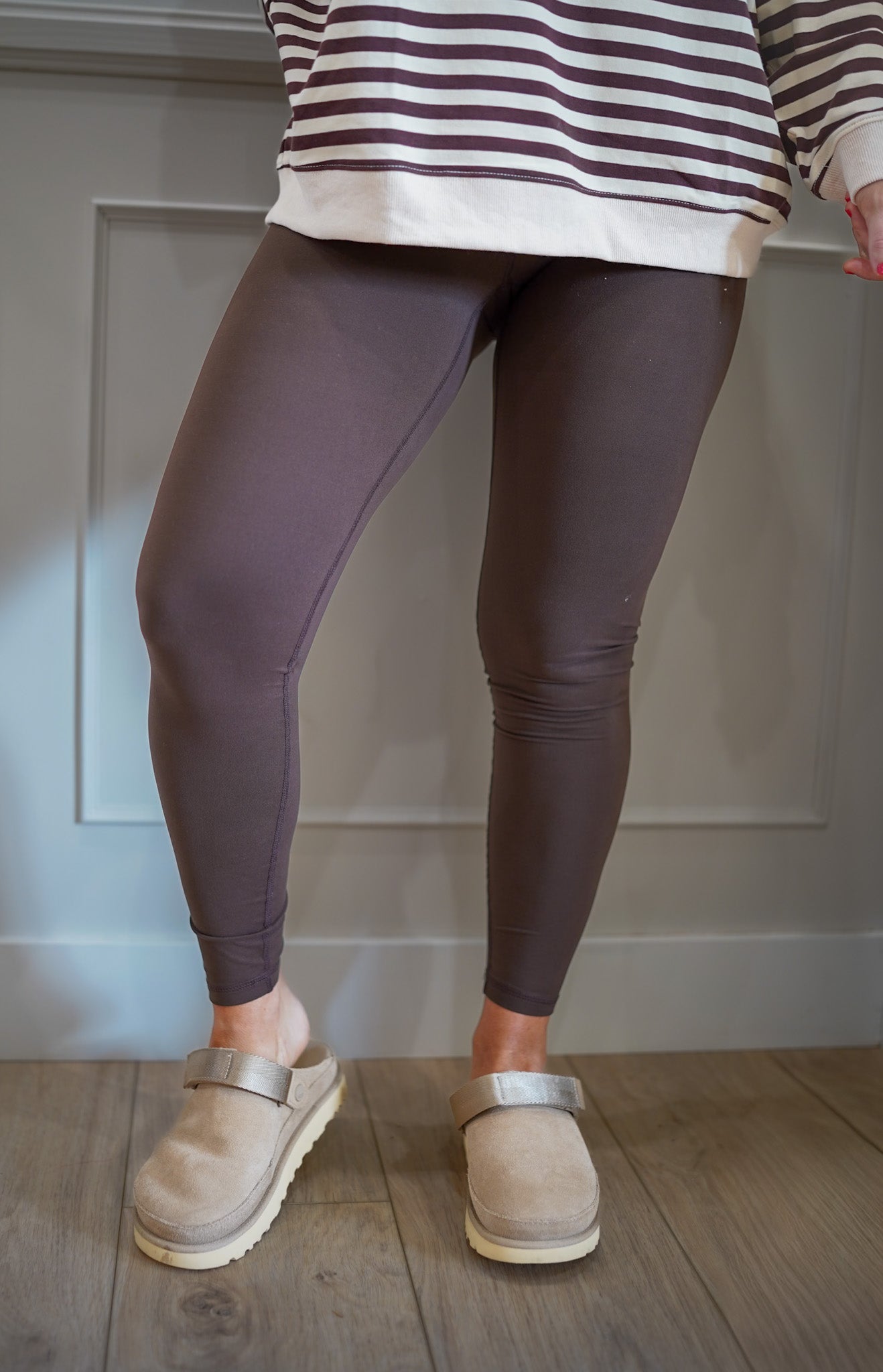 Our core essential butter leggings in espresso! Wardrobe staple and SO buttery soft + stretchy!